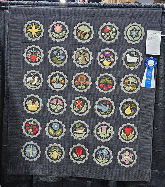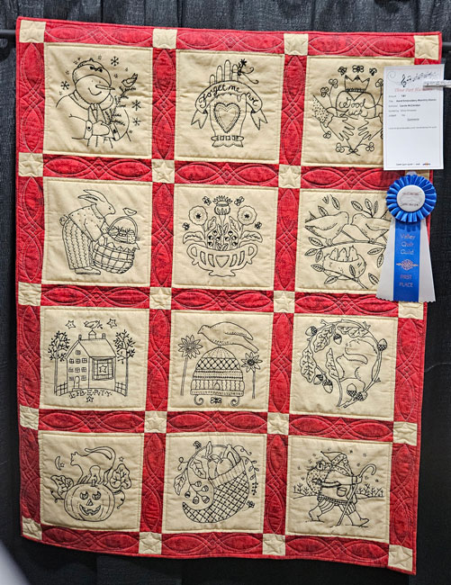 Hand Embroidery Monthly Blocks; Carole McClendon, quilted by Silvia Hinojosa