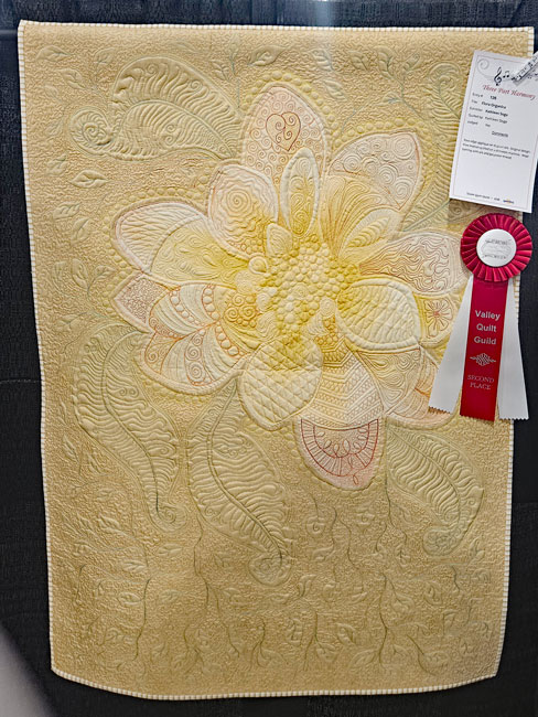 I was happy to be in town for the Valley Quilt Guild show in Yuba City; I don’t always get to make the show. The Valley Quilt Guild Show truly is unique and it starts at the entrance: